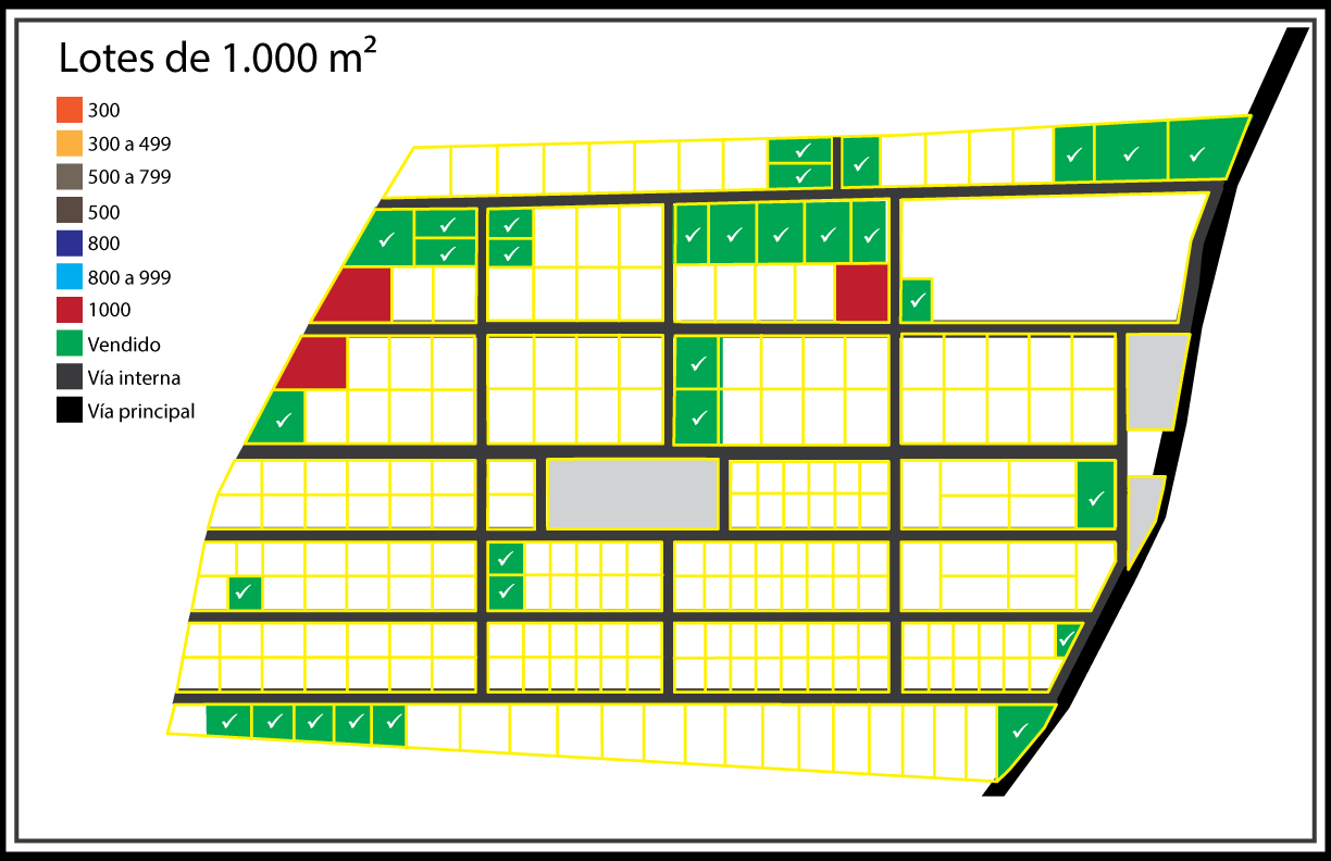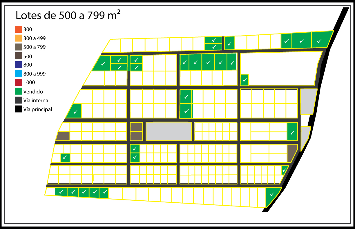 Total, en lotes campestres 156.575.15 m2, divididos en: lotes de 300m2, 400m2, 500m2, 600 m2, 800 m2 y 1. 000m2. Total, del proyecto 192.491.27m2. Conjunto Cerrado Portería con control de acceso 24/7… Lotes Urbanizados Disponibles en tamaños desde 300 m²…